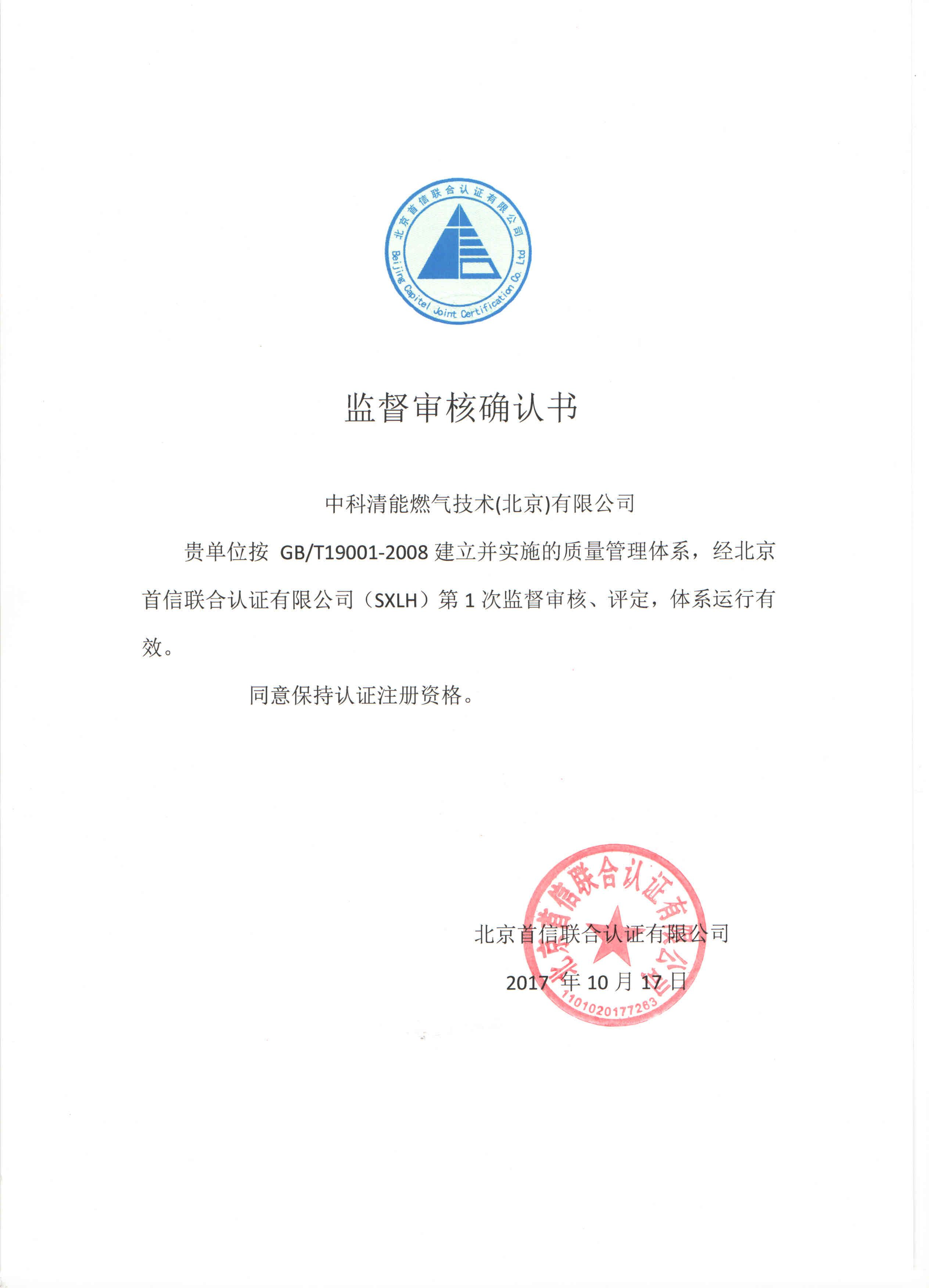 为使体系运行持续有效, 2017年10月14-16日我公司接受了北京首信联合认证有限公司对ISO9001质量管理体系的监督审核。